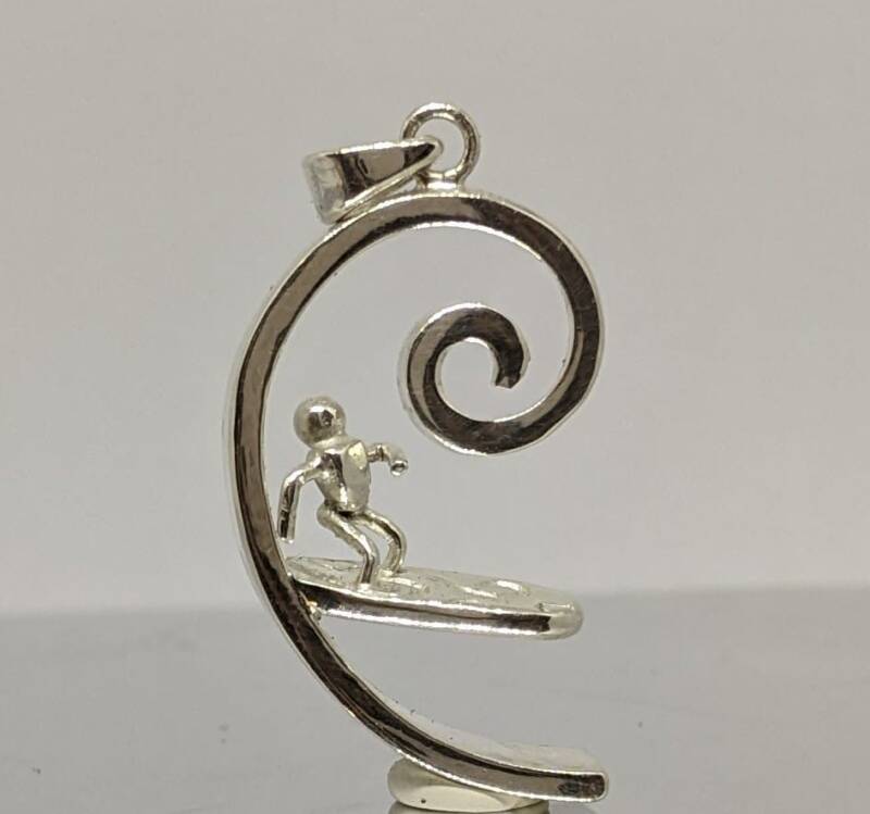 Deze hanger is ontstaan uit liefde voor de Fibonaci Golden ratio en surfen. Uitstekend te combineren wist ik nadat ik had opgezocht wat de Fibonaci was en hoe het er uit zag. Vooral het poppetje was een echte uitdaging zo klein.