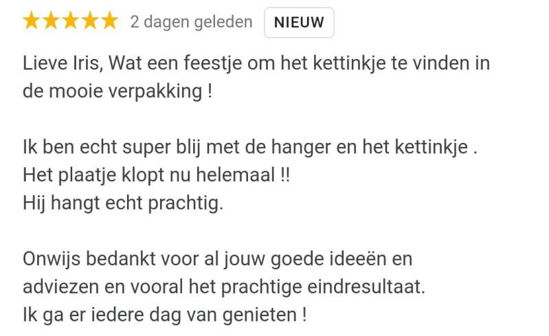 En bedenk je, een sieraad dat speciaal voor jou gemaakt wordt kan niet geretourneerd worden. Hier lees je de algemene voorwaarden.